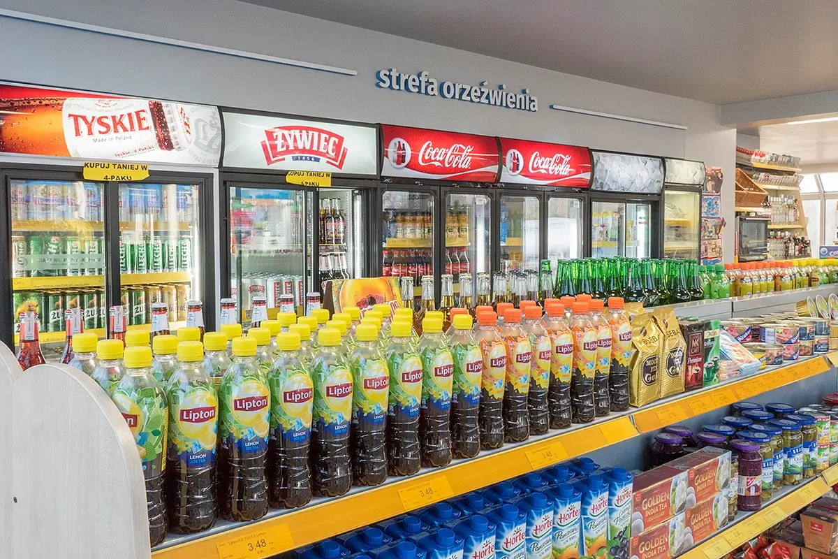 - Szeroki wybór — hot-dogi, croissanty, przekąski, napoje i kawa.